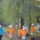 樹木医の池ノ谷様のからの講義の後、実際に校内にあるシダレヤナギ3本を実際に診断しました。目視で教わった診断ポイントを基にして、3本中最も危険度の高い木を推測します。その後、最も危険度が高い木について、空洞や腐朽、根本の空洞などと、詳しく観察していきます。樹幹をたたいて音から内部の様子を推測したり、根本の空洞を確認するなどを体験させていただきました。