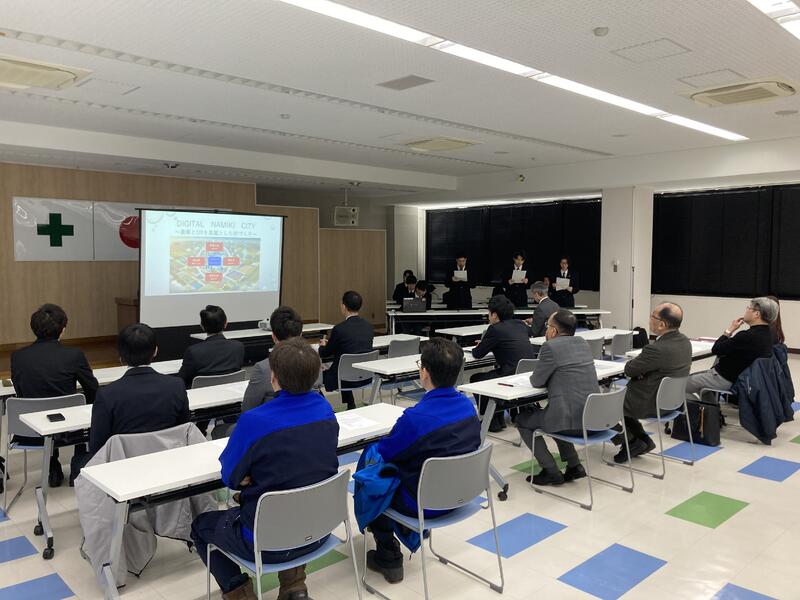 1月28日、農業土木工学科開発土木専攻班10名が空知建設業協会の協力のもと実施した研究内容を協力会社の皆様に報告しました。