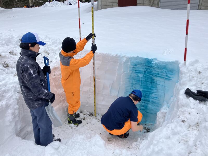 「雪は天から送られた手紙である(中谷 宇吉郎先生)」の言葉のとおり、今年の積雪状態を色水を使って観察し、雪崩の起きる仕組みなどを全員で学習しました。