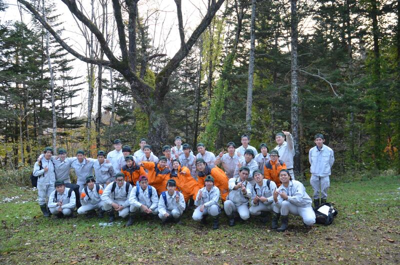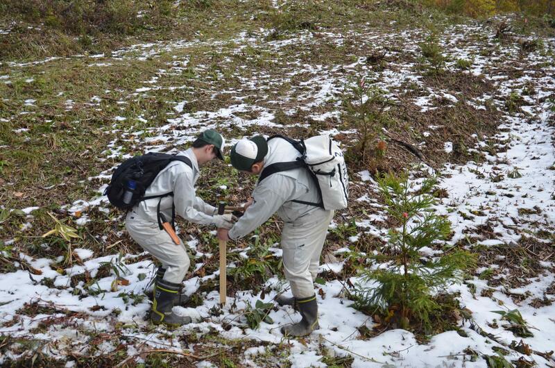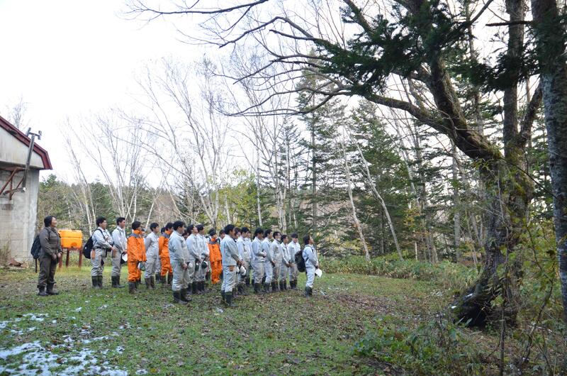 10月30日、3年生が高校生活最後の演習林実習を行いました。前日の月形は雪が降り、林内には少し雪の残る状態でしたが、それぞれの専攻班に分かれて、看板の設置や殺鼠剤の散布、取り残したデータの収集を行いました。