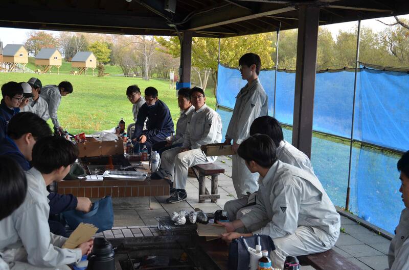 炭火を囲みながら、担任の先生を交えてこれまでの実習を振り返りました。